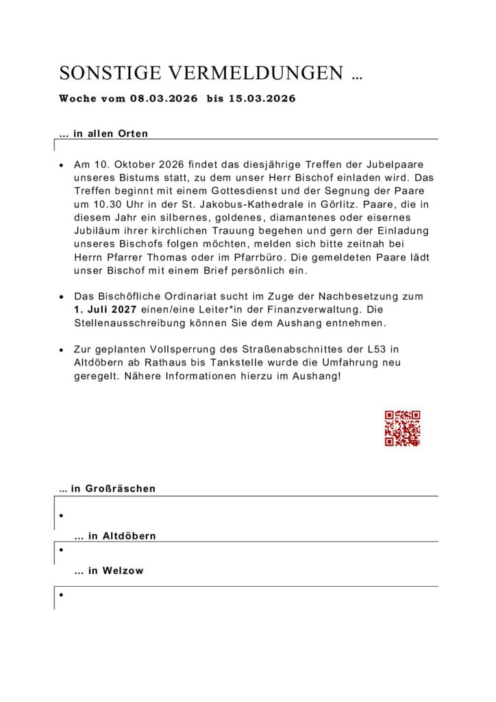 Gottesdienst Vermeldungen